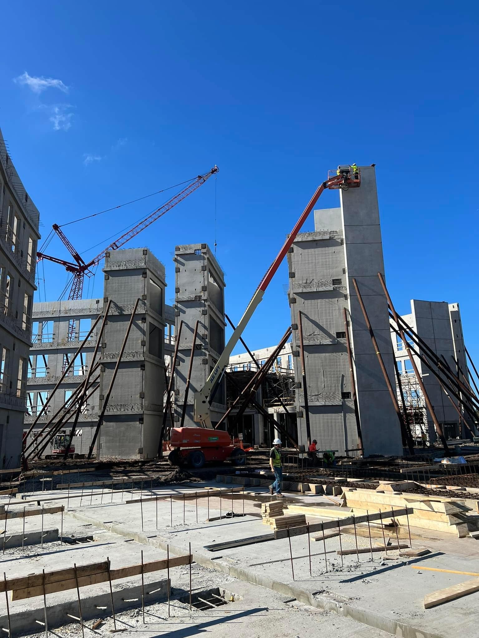 This project includes the structural construction of a modern hospital facility designed to meet healthcare performance and safety standards. The scope of work features cast-in-place concrete foundations, shear walls, slab-on-grade systems, and elevated composite floor slabs supported by structural steel framing. Reinforcement details and anchorage systems are coordinated to accommodate medical equipment loads, seismic requirements, and MEP penetrations. The building design includes critical load-bearing elements to support vertical circulation cores, rooftop mechanical units, and patient care floors.